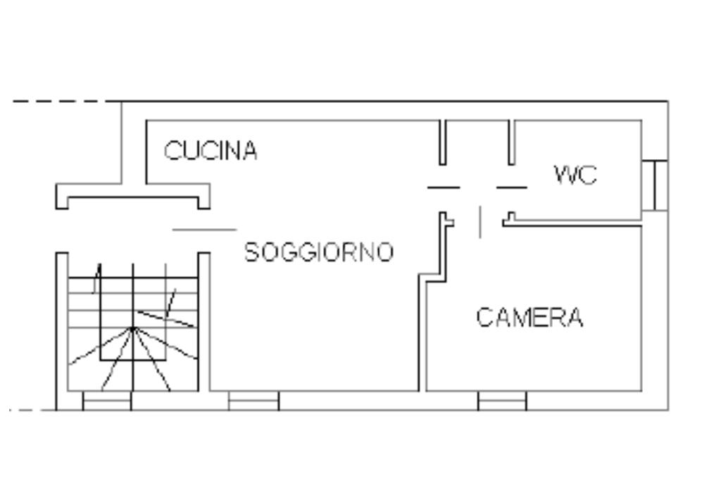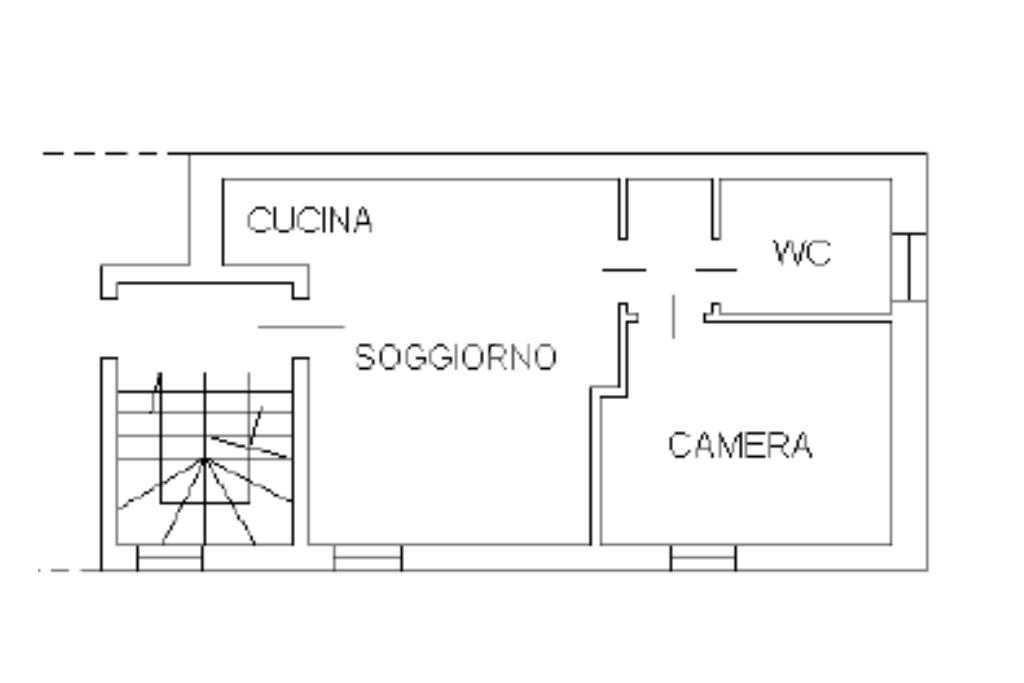 L’immobile si compone di ingresso all’interno della zona soggiorno con angolo cottura, proseguendo verso il reparto notte troviamo disimpegno con armadio a muro; bagno finestrato e camera da letto.