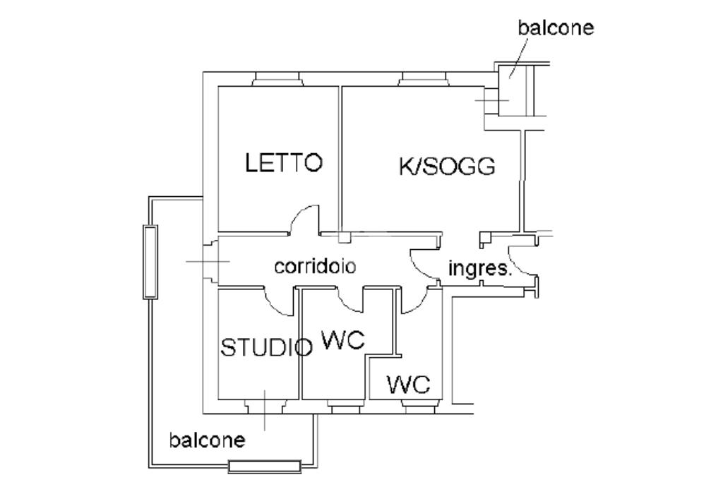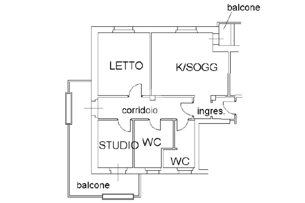 L’appartamento si trova al piano primo e si compone di zona di ingresso che ci conduce all’interno della zona soggiorno con angolo cottura di 18.80 mq con accesso ad un piccolo balcone.