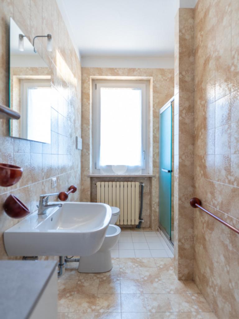 Scendendo al piano terra troviamo un posto auto scoperto ed una corte esclusiva di 58.00 mq, interessante per chi è alla ricerca di uno sfogo esterno abitabile.