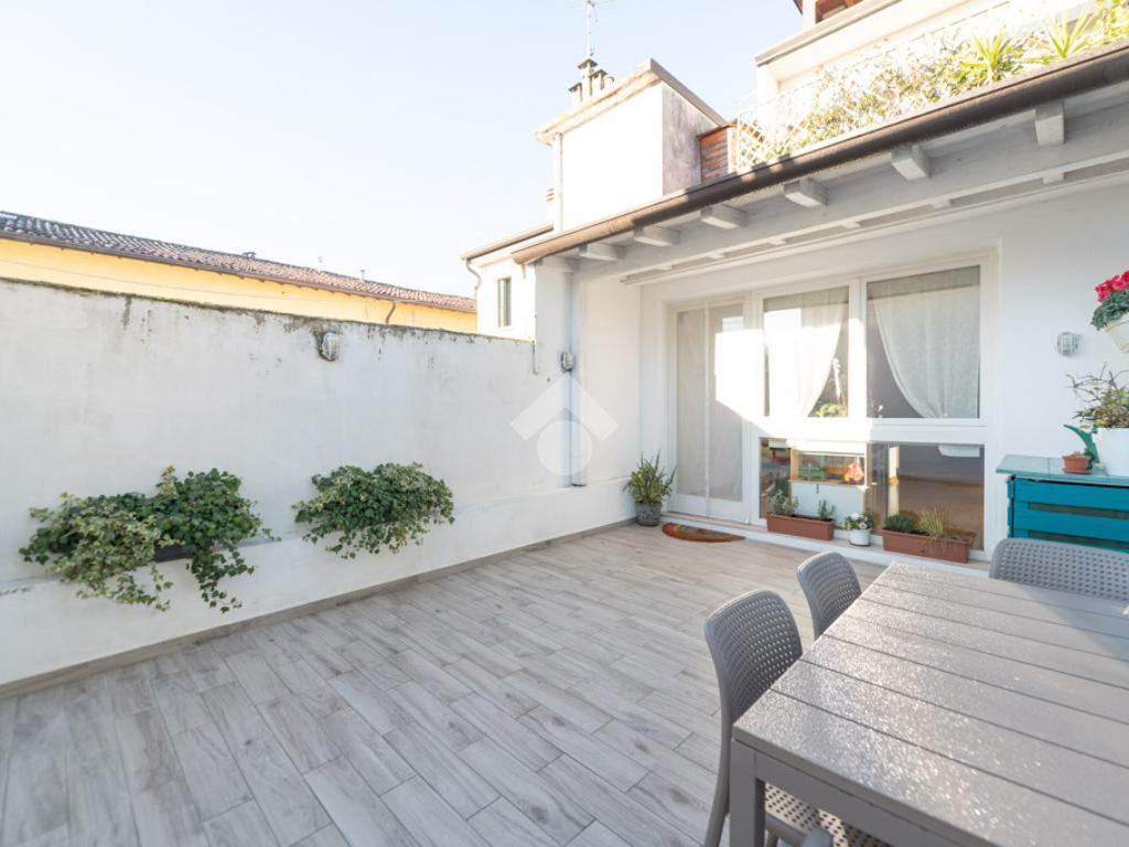 Villafranca di Verona - inserito nel pieno centro storico di Villafranca, precisamente su Corso Vittorio Emanuele II, proponiamo in vendita elegante appartamento trilocale completamente ristrutturato servito da terrazzo abitabile.