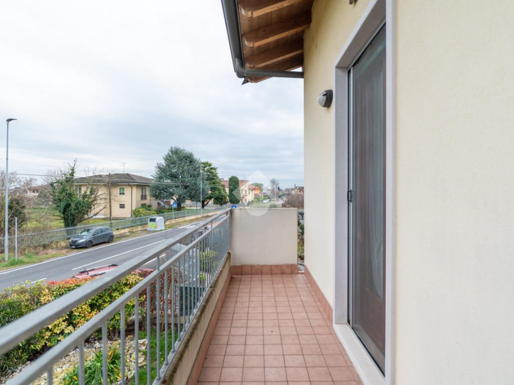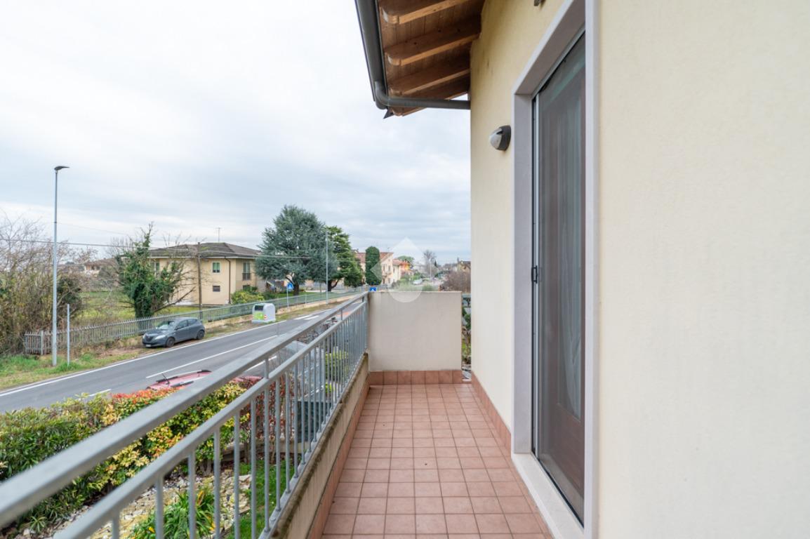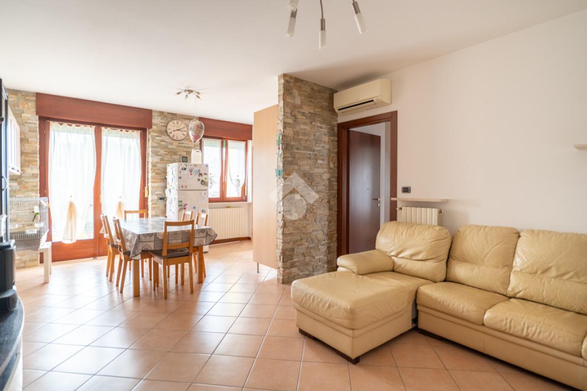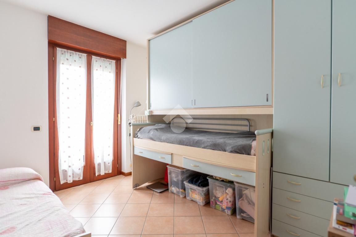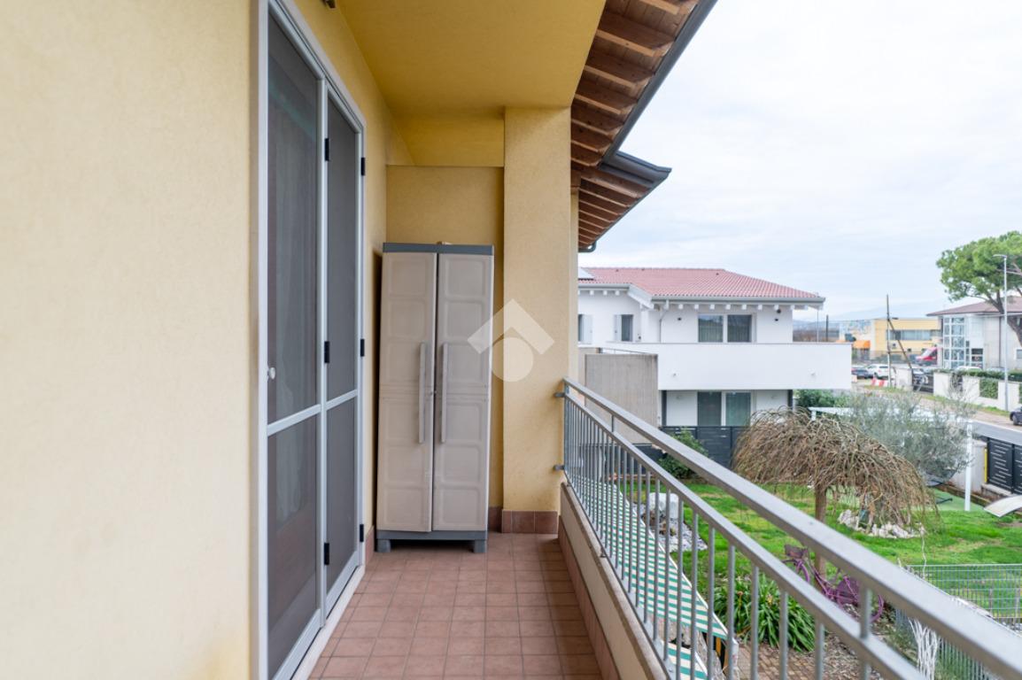 Villafranca di Verona - inserito in recente e piacevole contesto condominiale di sole otto unità, all’interno di via a fondo chiuso servita da parco pubblico, proponiamo in vendita elegante trilocale al piano primo.